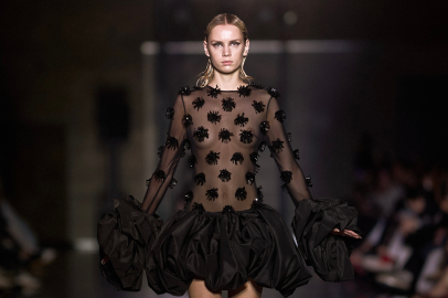 Transparan dokularla bütünleşen heykelsi formlar, zamansız şıklığı, dişil gücü ve stilin dönüştürücü etkisini ortaya koyuyor. İnce transparan dokularla birleşen heykelsi formlar, zarafeti bir zırh gibi taşıyan güçlü kadın silüetlerini sahneye taşındı.