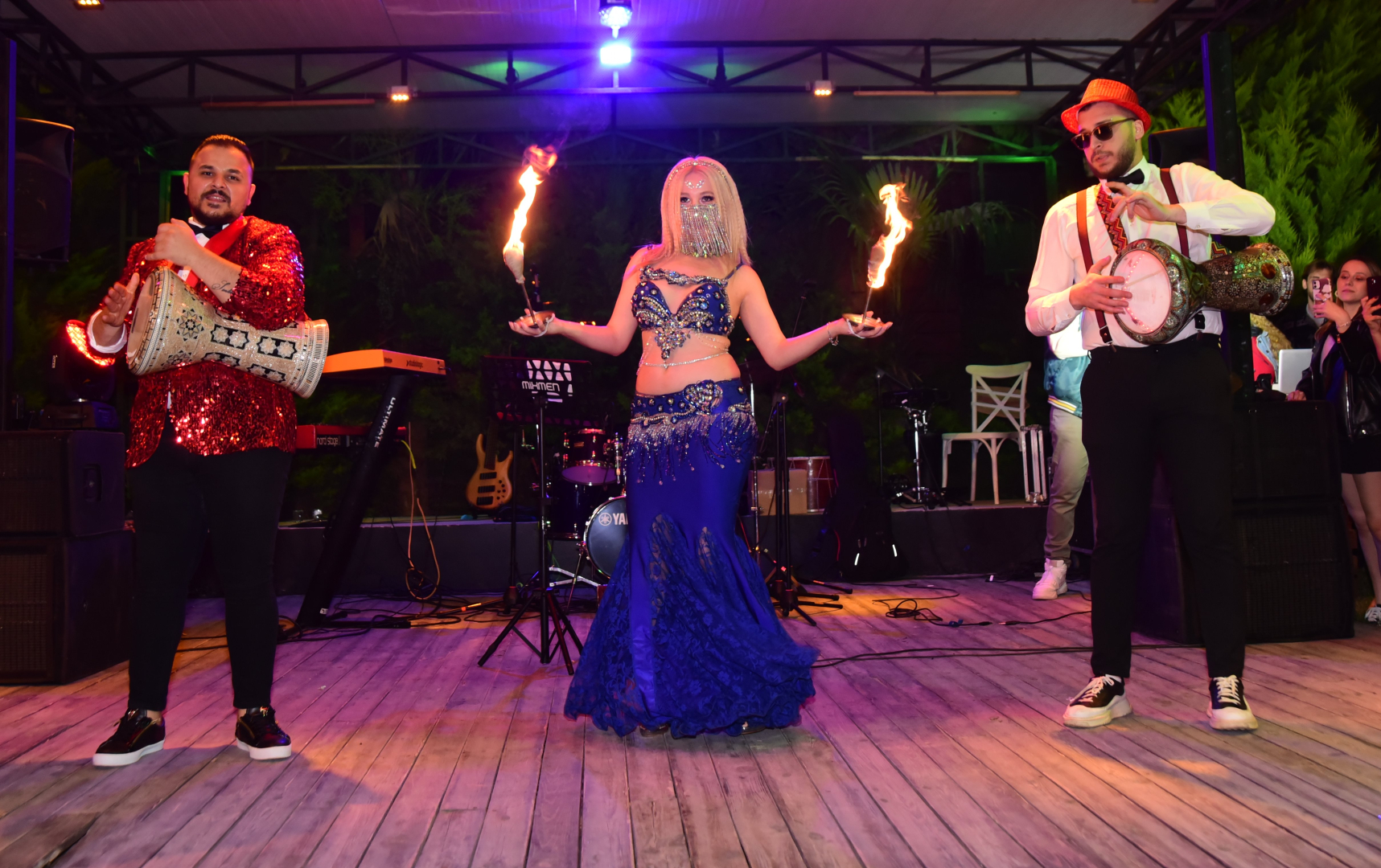 Levent Uçar'ın sahneye çıktığı ve 90'ların unutulmaz şarkılarını seslendirdiği gecede oryantal şov ise ilgiyle izlendi.