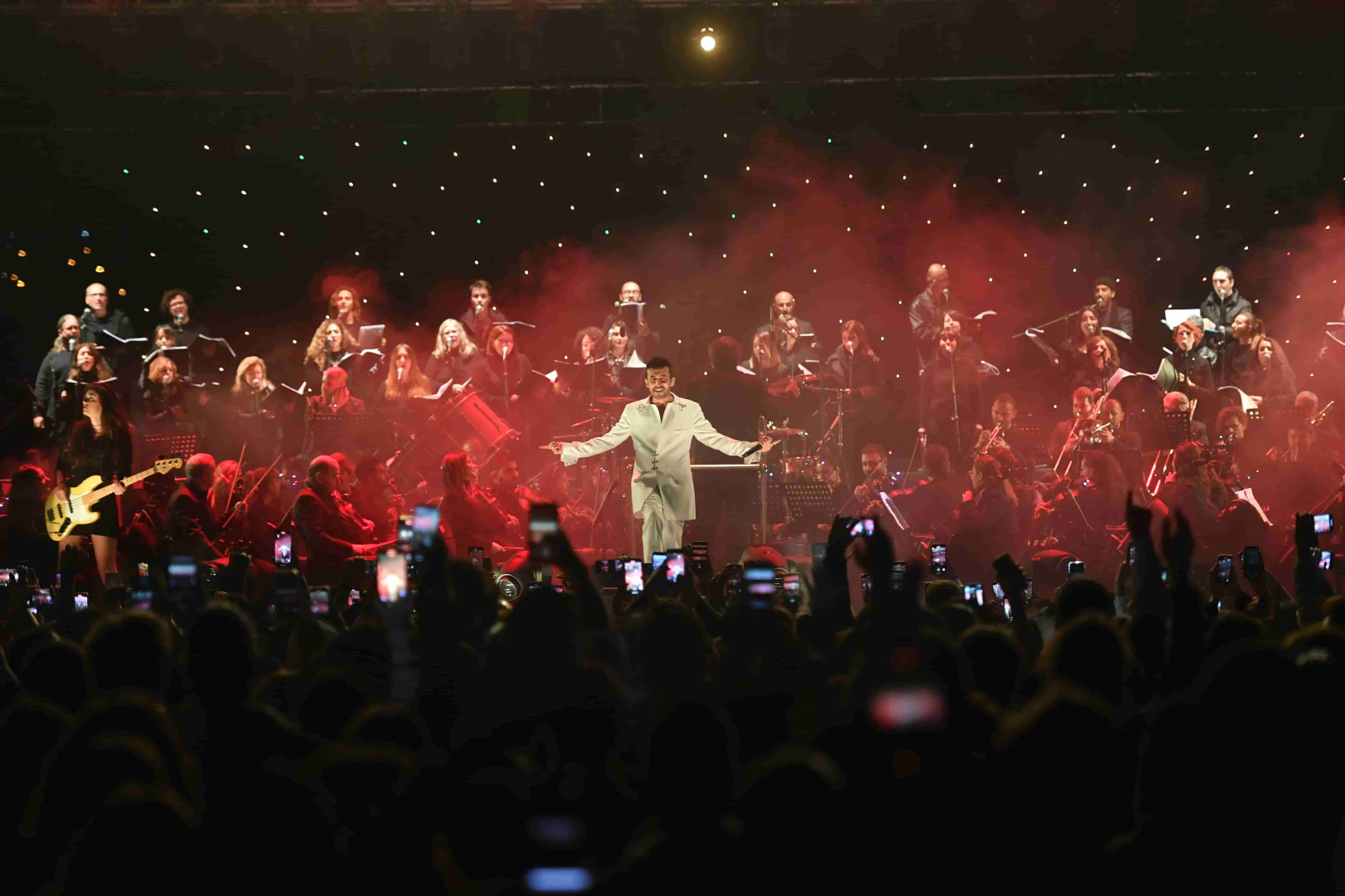 Toplam 100 kişiden oluşan orkestra ve koroyla yine görkemli bir konsere imza atan Gazapizm, beyaz trençkotu ve takım elbisesi içinde çok şıktı.