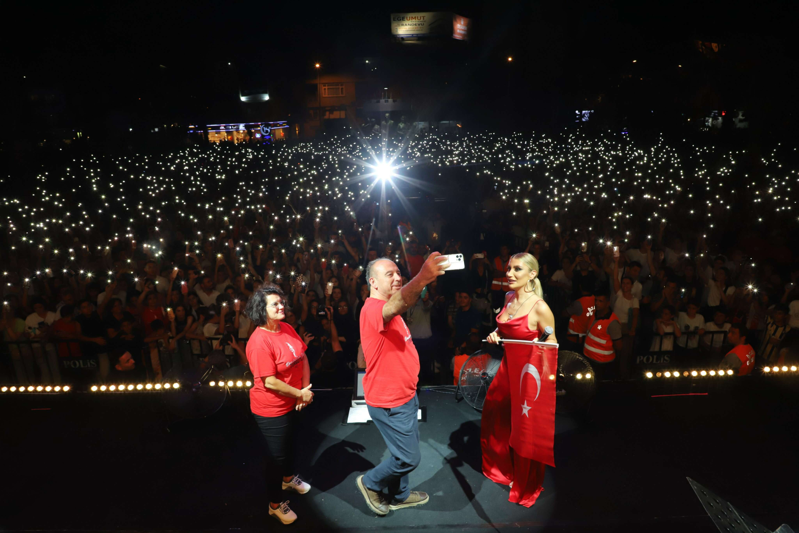 İrem Derici konserinin bir bölümünde sahneye Turgutlu Belediye Başkanı Çetin Akın ve annesi ile sahneye çıktı.
