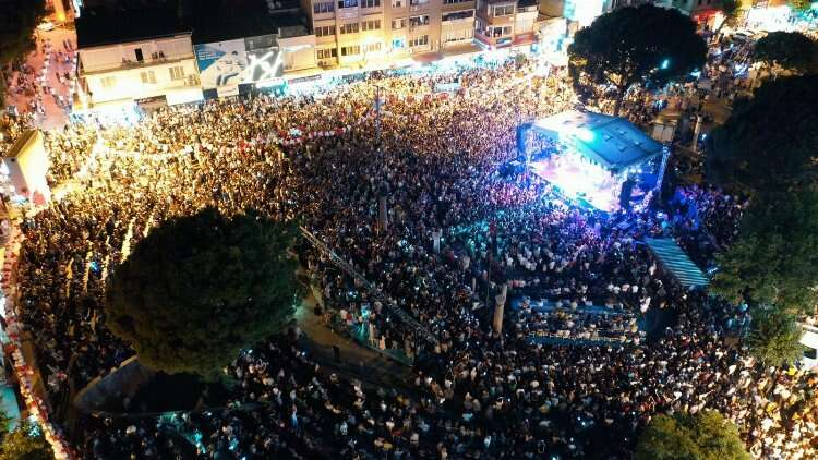İzmir'de 86. Uluslararası Bergama Kermes Festivali’nin ilk gününde Cumhuriyet Meydanı’nda sahne alan Melek Mosso’yu yaklaşık 15 bin kişi izledi
