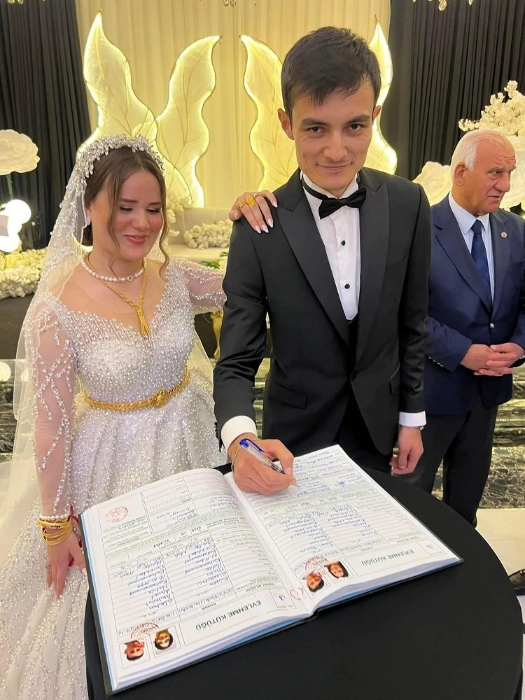 Tural ŞAHBAZLI / KAHRAMANMARAŞ (İGFA) - Salman ve Uzun çiftinin nikah şahitliğini, Göksun Belediye Başkanı Selim Cüce, AK Parti Dulkadiroğlu İlçe Başkanı Mustafa Çakar, AK Parti Onikişubat İlçe Başkanı Mücahit Kara, MHP İl Başkan Yardımcıları Çağrı Türkmener ve Mehmet Gözalıcı, Yeniden Refah Partisi İl Başkan Yardımcısı Muhammet Eliaçık, Anadolu Ajansı Bölge Müdürü Kerem Kocalar ve genç iş insanı Aykut Balcıoğlu üstlendi.