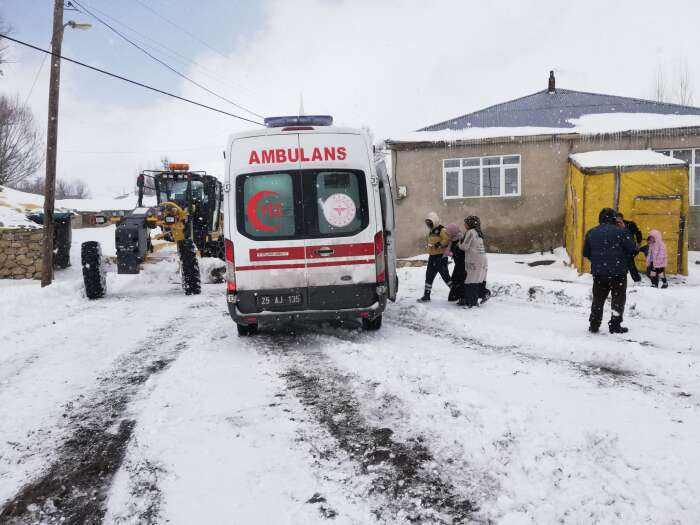 Erzurum'da kalp krizi geçiren hastalar kar nedeniyle hastaneye gidemeyince köy halkı ve belediye seferber oldu.