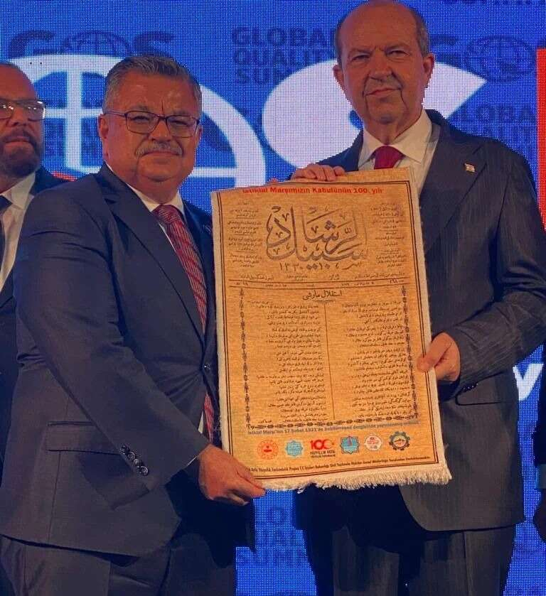 Sedat CEYLAN / BİLECİK (İGFA) - İstanbul temasları kapsamında Global Kalite Zirvesi’ne katılan KKTC Cumhurbaşkanı Ersin Tatar, AK Parti Bilecik Milletvekili Selim Yağcı’ya sosyal duyarlılık ödülü verdi.