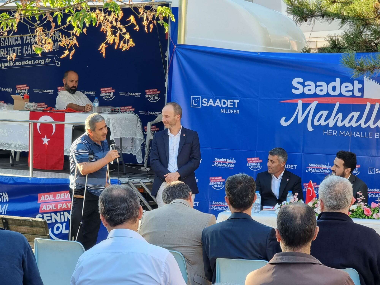 Bursa'da Saadet Partisi Nilüfer İlçe Başkanı Mehmet Cihan Terzioğlu, 'Saadet Mahalle'de Programı' çalışmaları kapsamında Çalı Mahallesi sakinlerini dinledi.