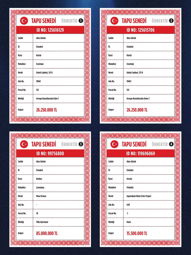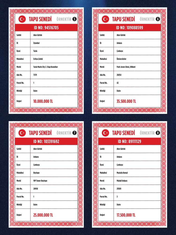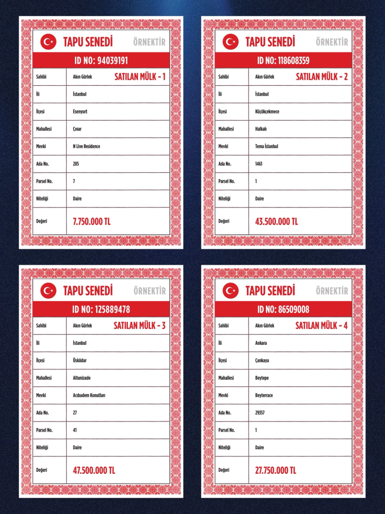 İŞTE İDDİA EDİLEN 16 ADET ID KAYIT NUMARALI TAPULAR