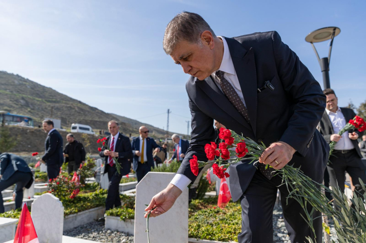 HATAY (İGFA) - CHP Genel Başkanı Özgür Özel ve İzmir Büyükşehir Belediye Başkanı Dr. Cemil Tugay, Hatay’da depremzedelerle bir araya geldi. Program kapsamında Antakya’da 6 Şubat depremlerinde yaşamını yitiren 4 bin yurttaşın defnedildiği Narlıca Deprem Şehitliği ziyaret edilerek karanfiller bırakıldı.