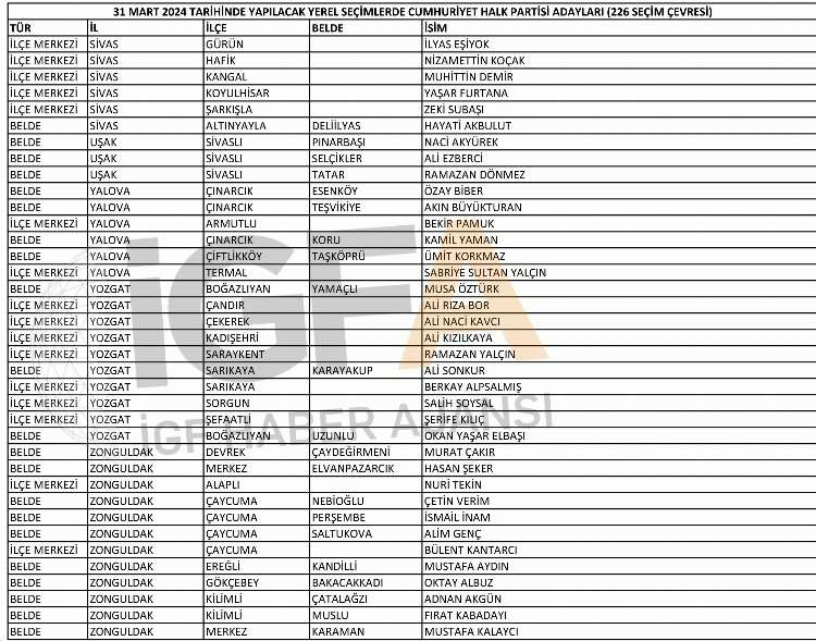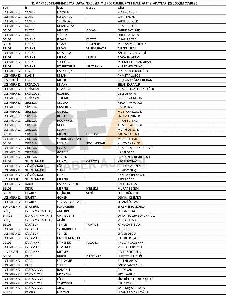 İşte CHP'nin belli olan 227 belediye başkan adayının tam listesi:
