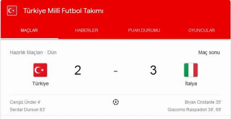 A Milli Futbol Takımı, İtalya ile Konya Büyükşehir Stadyumu'nda oynadığı özel maçtan 3-2 mağlup ayrıldı.