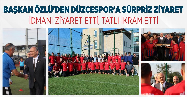 Düzce Belediye Başkanı Dr. Faruk Özlü, geçen sezon 3. Ligde şampiyonluk ipini göğüsleyerek TFF. 2. Lige yükselen Düzcespor’u Şiralık tesislerinde ziyaret ederek, tatlı ikramında bulundu.