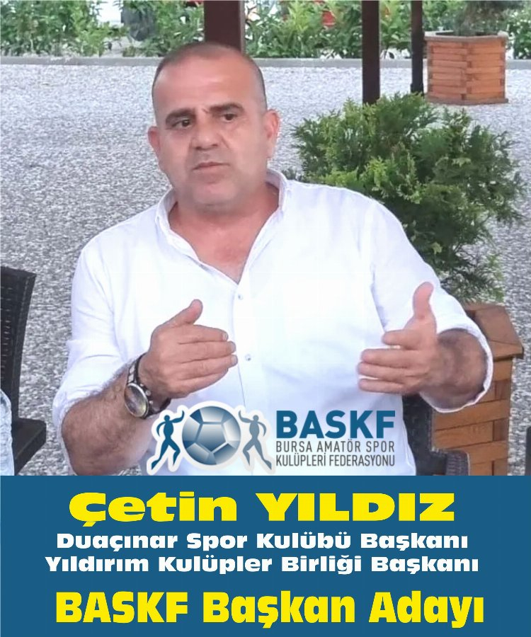 Bursa Amatör Spor Kulüpleri Federasyonun (BASKF) Ekim ayında yapılacak olağan genel kurulunda aday olacağını açıklayan Çetin Yıldız, seçimler öncesi projelerini açıkladı. Bursa ve 17 ilçede birçok kulübün desteğini yanına alarak yola çıkan Başkan Çetin Yıldız, projeleri arasında özellikle metropol bir kent olmasına rağmen gece maçlarının oynanmamasının önüne geçerek Bursa’da gece maçlarının oynayacağının garantisini verdi.