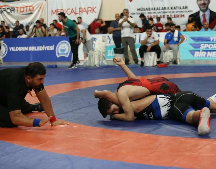 Bursa Büyükşehir Belediyesi’nin destekleri ile dün başlayan U15 Serbest Güreş Türkiye Şampiyonası’nda heyecan sürüyor.