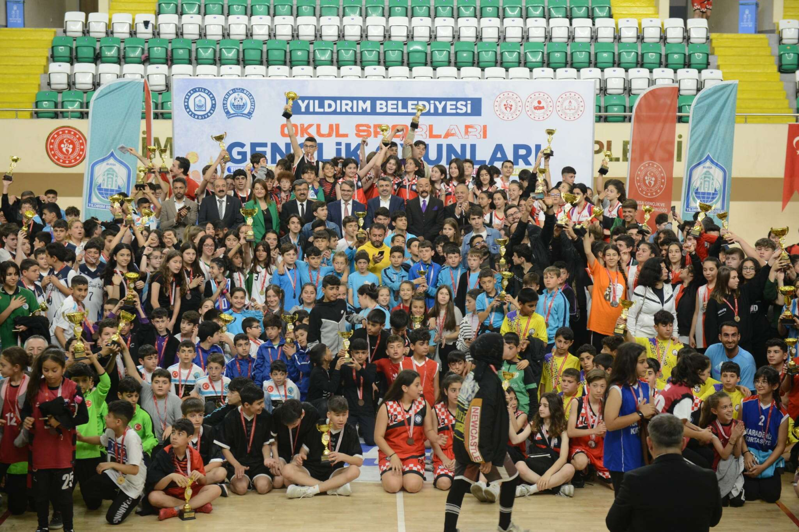BURSA (İGFA) - Naim Süleymanoğlu Spor Kompleksi’nde gerçekleşen Okul Sporları Gençlik Oyunları’nın ortaokul kategorisi final törenine Yıldırım Belediye Başkanı Oktay Yılmaz’ın yanı sıra Yıldırım İlçe Kaymakamı Metin Esen, Büyükşehir Belediyesi Başkan Vekili Fethi Yıldız, İlçe Gençlik ve Spor Müdürü Mehmet Demirci, okul müdürleri ve sporcular katıldı.