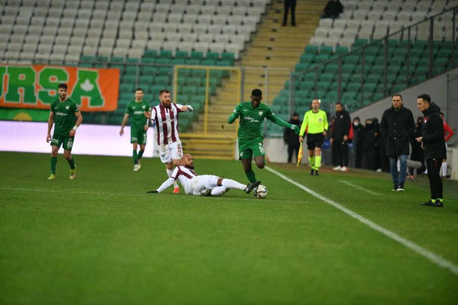 BURSA (İGFA) - Bursaspor evinde ağırladığı Royal Hastanesi Bandırmaspor karşısında 1-0 mağlup oldu. Abdullah Buğra Taşkınsoy'un yönettiği maçta yeşil beyazlılar kötü gidişata bu hafta da 'dur' diyemedi.