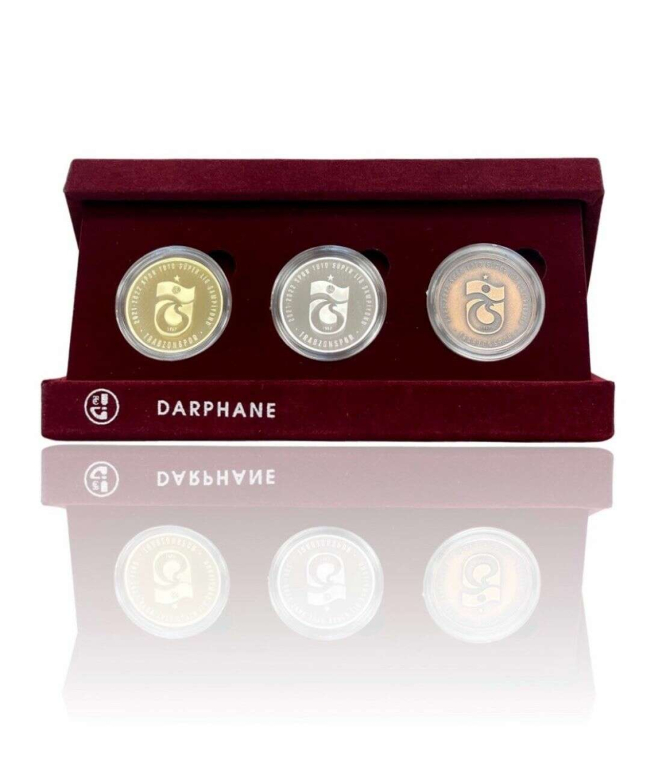 Türkiye Cumhuriyeti Hazine ve Maliye Bakanlığı Darphane Damga Matbaası Genel Müdürlüğü,Süper Lig'in son şampiyonu Trabzonspor'a özel hatıra parası koleksiyonlarını satışa çıkardı.