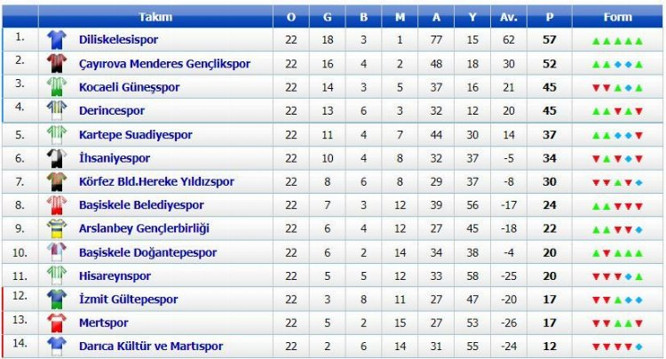 Diliskelesispor'da Osman attığı 4 gol ile yıldızlaşırken, Görkem'de 2 gol ile skora katkı verdi. Diliskelesispor'un diğer gollerini Usame, Barış ve Emre kaydetti. Bu skor ile puanını 57'ye yükselten Diliskelesispor, 52 puanlı Çayırova Menderes Gençlikspor'un 5 puan önünde lider konumda bulunuyor. Diliskelesispor 23. hafta maçında deplasmanda İhsaniyespor ile karşılaşacak.