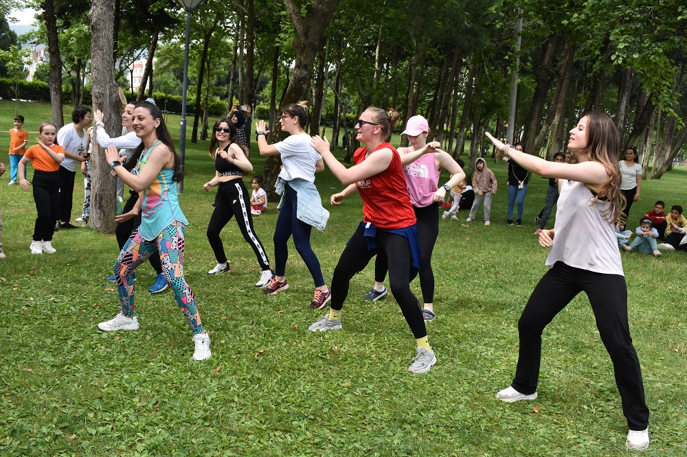 Laleli Migros Büyük park yanında gerçekleşen etkinliğe 600 kadın ve öğrenci katıldı. Kadınlar müzik eşliğinde spor yapma imkanı buldu.