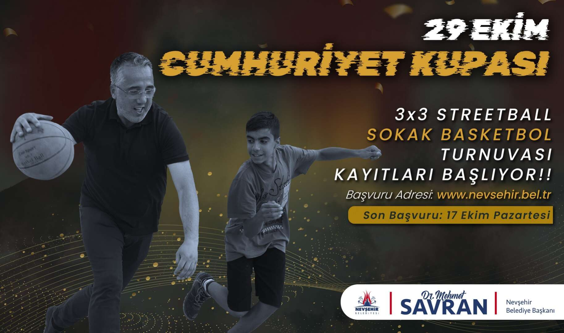 Nevşehir Belediyesi Gençlik ve Spor Hizmetleri Müdürlüğü tarafından 29 Ekim Cumhuriyet Bayramı dolayısıyla düzenlenecek olan 3x3 Sokak Basketbolu Turnuvası için başvurular başladı.
