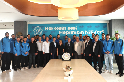 BURSA (İGFA) - Bursa'da Nilüfer Belediye Başkanı Şadi Özdemir, Hentbol Erkekler Süper Ligi Vedat Pars Sezonu’nu ikinci olarak tamamlayarak, Avrupa’ya gitmeye hak kazanan Nilüfer Belediyespor Erkek Hentbol Takımı’nı Halk Evi’ndeki makamında ağırladı.