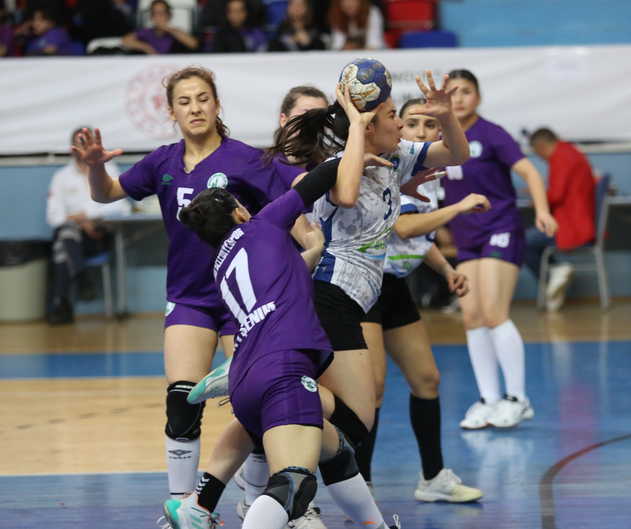 ZONGULDAK (İGFA) - Zonguldak'ta devam eden Kadınlar Hentbol 1. Ligi play-off'larında Bursa Büyükşehir Belediyespor, üçüncü maçında Sivas Belediyespor'u 33-26 mağlup ederek 3'te 3 yaptı ve bitime bir maç kala şampiyon olarak Süper Lig'e çıkmayı garantiledi.