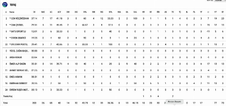 Dördüncü periyoda da Cem Küçüközkan’ın basketiyle başlayan Bursa ekibi, Ömer Alp Engin ve Cem’in sayılarıyla 32.20’de 14 sayılık fark yakaladı: 67-53. Ruşen Mutlusoy’un üçlüğü sonrası (70-58) son 4 dakikada skor bulamayan TOFAŞ, buna rağmen üstünlüğünü korumasını bildi ve parkeden 70-62 galibiyetle ayrıldı.