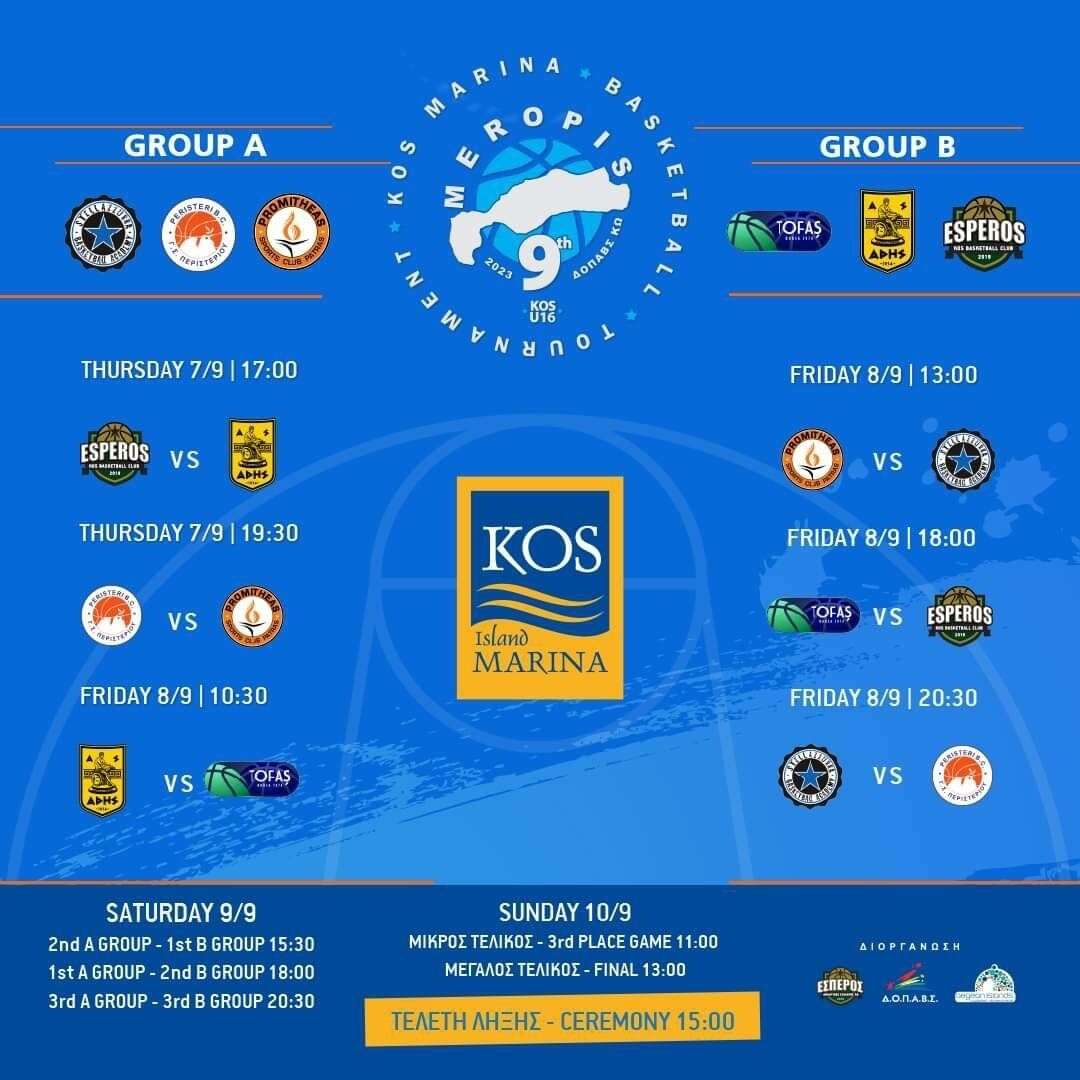 Fırat Yavuz yönetimindeki TOFAŞ Yıldız A Takımı (U16), 2023-2024 sezonu hazırlıkları kapsamında Yunanistan’da özel bir turnuvaya katılıyor. Esporos Kos Basketbol Kulübü’nün ev sahipliğinde Yunanistan’ın Kos Adası’nda bu yıl 9.’su düzenlenecek “Kos Marina” Meropis International Basketball Tournament’te maçlar 7-10 Eylül 2023 tarihleri arasında oynanacak. Turnuvaya TOFAŞ’ın yanı sıra Yunanistan ekipleri Aris B.C., Peristeri B.C., Promitheas Patras, Esperos Kos ve İtalyan temsilcisi Stella Azzura Roma kulüplerinin U16 takımları katılacak.