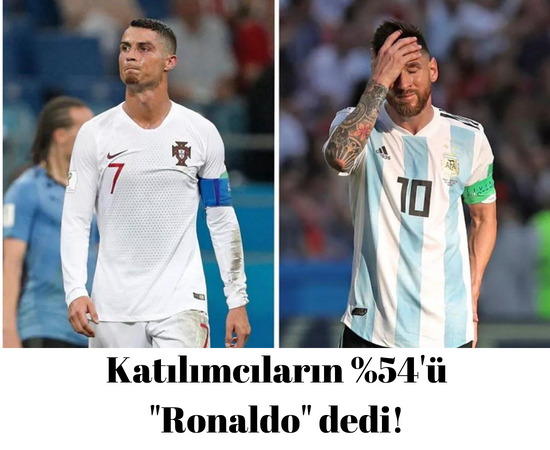 Katılımcıların %54’ü Ronaldo tercihinde bulunurken, %46’sı ise Messi’nin daha iyi olduğunu düşünüyor.