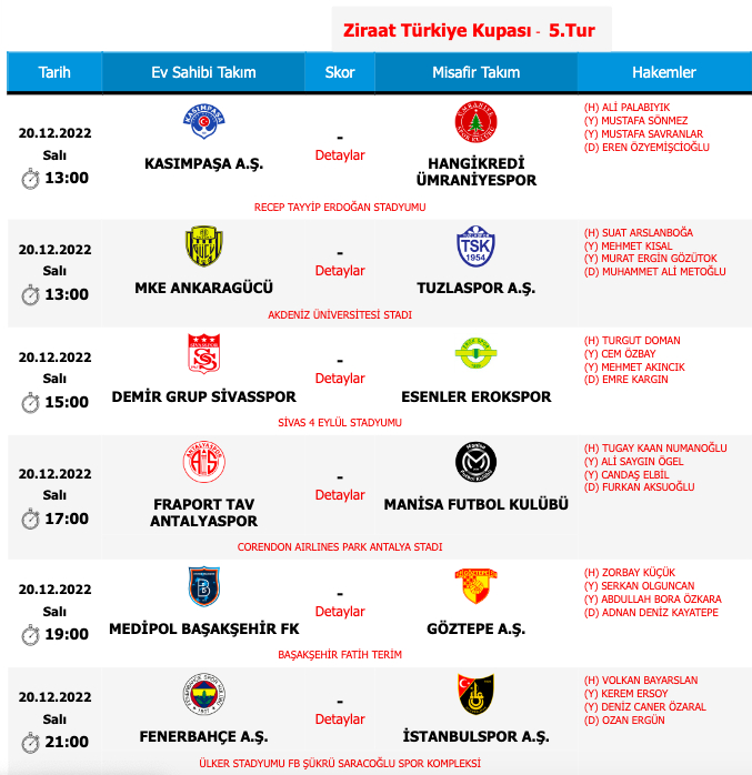 Ziraat Türkiye Kupası 5. Eleme Turu'nda ilk karşılaşma Recep Tayyip Erdoğan Stadyumu'nda Kasımpaşa-Hangikredi Ümraniyespor'la saat 13.00'te başlıyor.