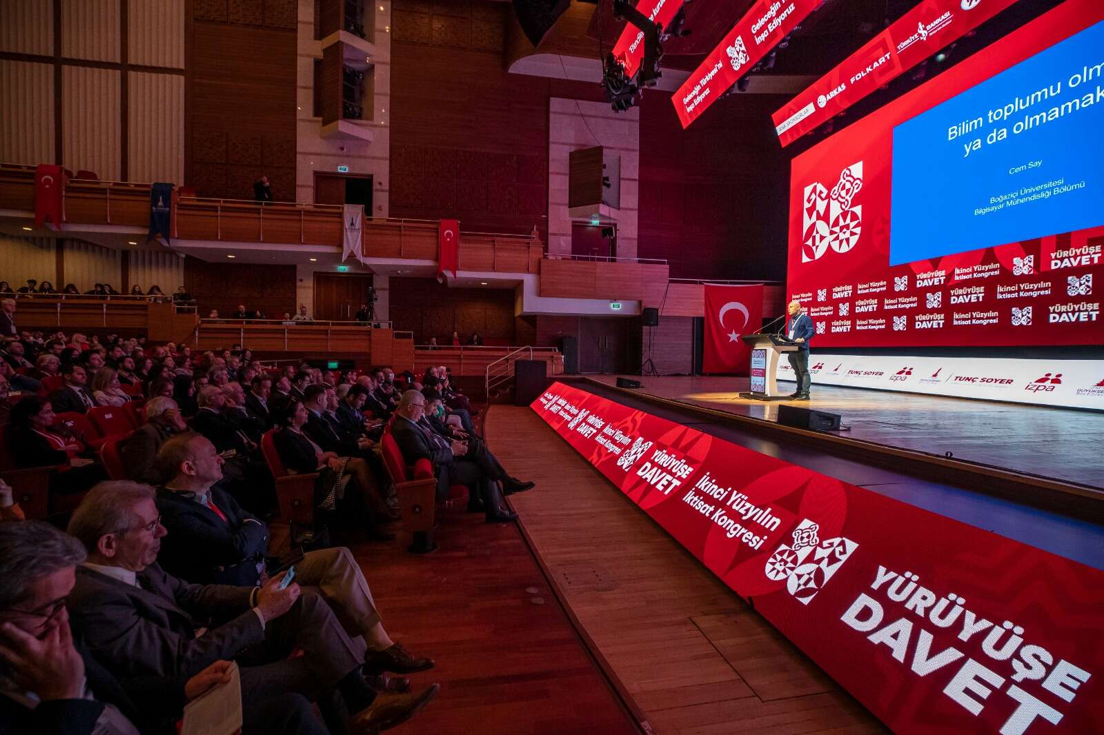 Yeni çıkan bilgisayar programları ve yapay zeka teknolojileri hakkında da bilgi veren Prof. Dr. Say, “Bazı kişilerin bu programlar sayesinde işleri elinden alınacak sorusu aklınıza gelebilir ancak tam da bugün burada İkinci Yüzyılın İktisat Kongresi’nde geleceğimizi şekillendireceğiz. Temel olarak büyük sektörler ve iş kolları A’dan Z’ye etkilenecek ve farklında olan ve olmayan insanlar arasında ciddi kırılmalar yaşanacak. Peki Türkiye olayın neresinde? Boğaziçi öğrencileri ‘Yemek Sepeti’, oyun şirketi ‘Peak’, ‘Getir’ gibi markaları yarattı. Teknolojide yabancı ülkelerden bizi ayıran en önemli nokta erişim kısıtlaması. ‘Ekşi Sözlük’ Amerika’da kurulsaydı eğer Facebook olurdu çünkü Facebook’tan önce kuruldu ancak Türkiye’de kapatılma kararı alındı. Engellendi.Türkiye’nin önünde bir seçim var ama bilim toplumu olup bilimin dediğini mi yapacağız ya da öbür türlüsünü mü yapacağız? Seçim bizim elimizde” diye konuştu.