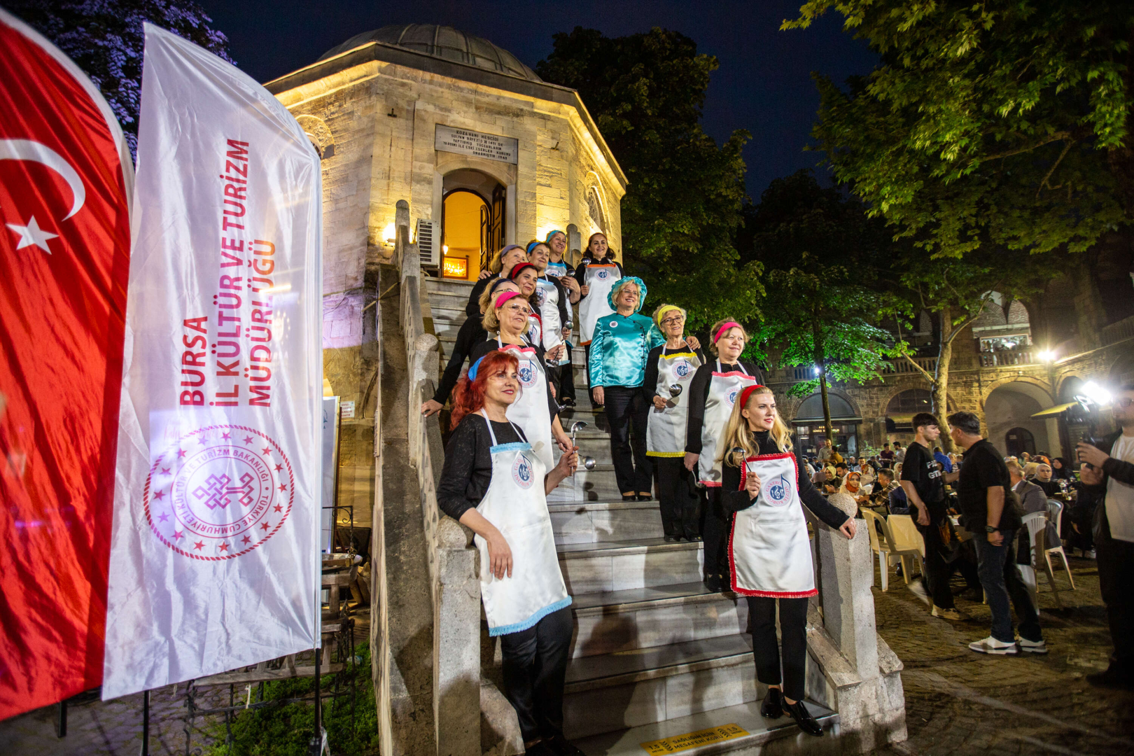 BURSA (İGFA) - Bursa’yı gastronomi turizminde de öne çıkarmak amacıyla Türk Mutfağı Haftası’nı birbirinden farklı etkinliklerle geçiren Büyükşehir Belediyesi, etkinlikler kapsamında ipeğin zarafetini kahvenin lezzeti ile buluşturdu. Yaklaşık 6 asır önce 2. Bayezid tarafından yaptırılan, Osmanlı döneminde ipek ticaretinin merkezi olan Koza Han, etkinlik kapsamında kapılarını Bursalılara açtı. Normalde geceleri kapalı olan Koza Han’ın tarihi atmosferine geç saatlerde eşlik etme imkanı bulan vatandaşlar, kahvelerini yudumladı, Büyükşehir Belediyesi Orkestra Şube Müdürlüğü saz sanatçıları eşliğinde keyifli bir akşam geçirdi.