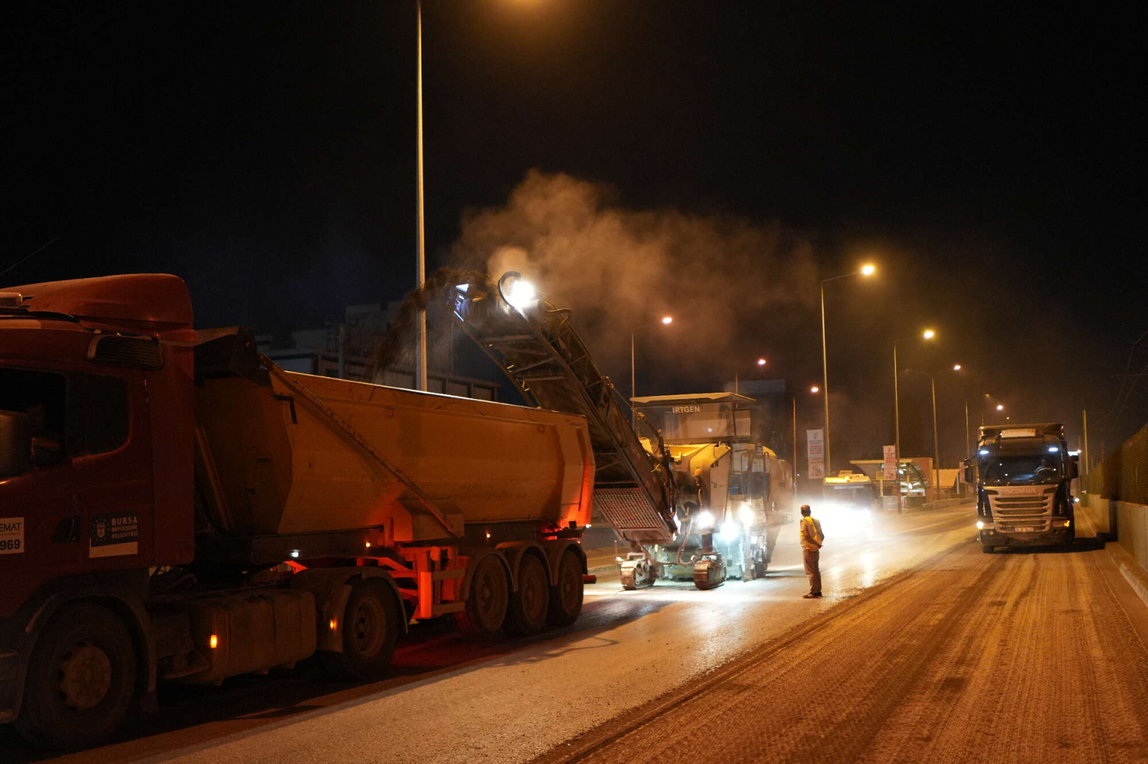 İlçe ve kent merkezlerindeki ana arterlerde trafiğin kesintiye uğramaması için çalışmalar gece boyu sürdürülüyor. Bu kapsamda doğu-batı aksında Bursa trafiğinin can damarı olan Bursa-Ankara karayolunun asfaltı da gece boyu devam eden çalışmalarla etap etap yenileniyor. Daha önce Yüksek İhtisas ve Mimar Sinan ile Otosansit ile Gürsu Kavşakları arasını çift yönlü olarak yenileyen ekipler, bu hafta sonu devam eden çalışmalarla Ankara gidiş istikametinde Gürsu ve Kestel Kavşakları arasını tamamladı.