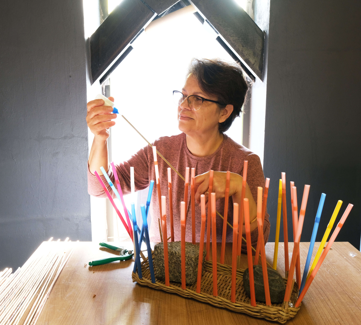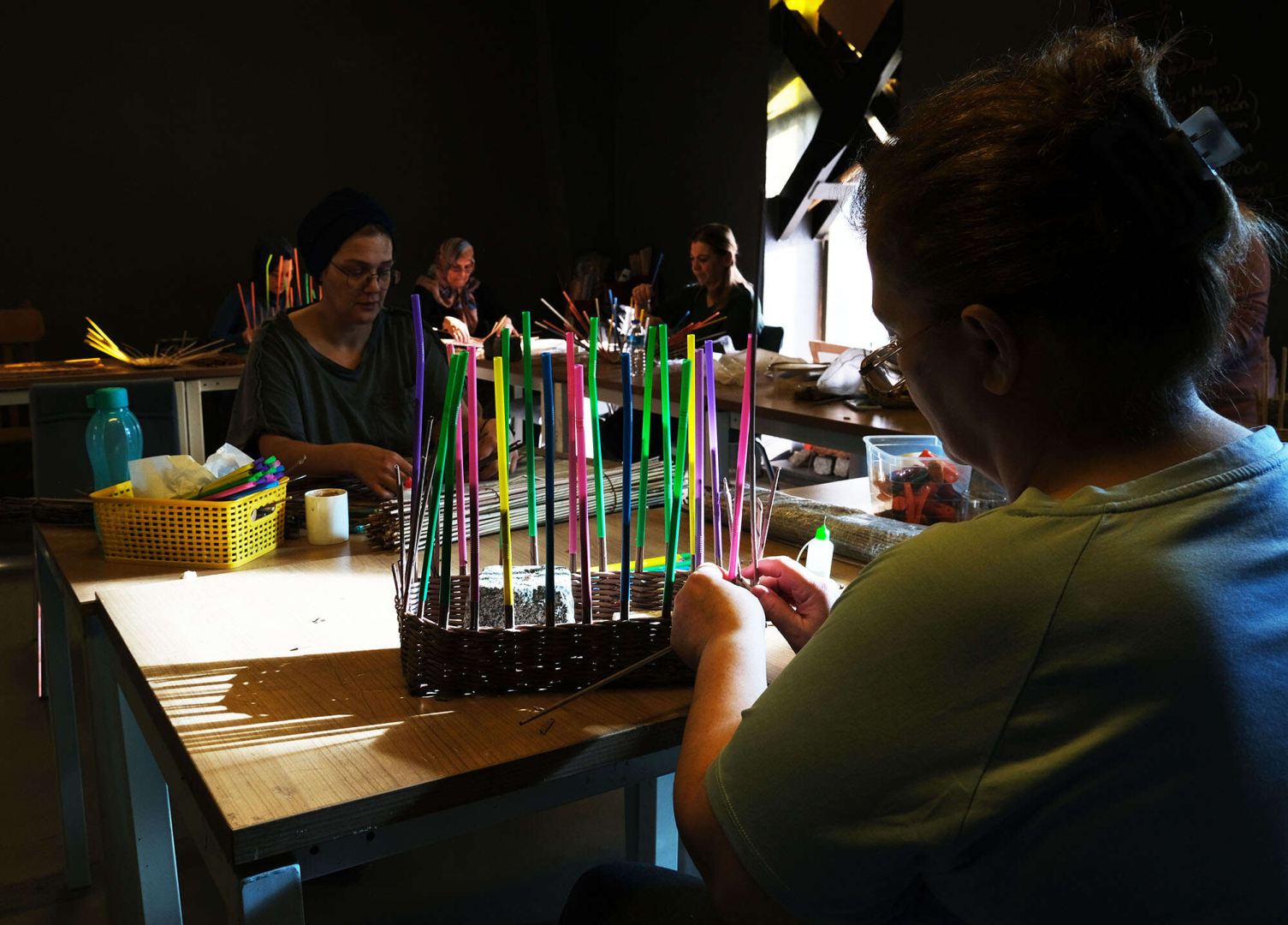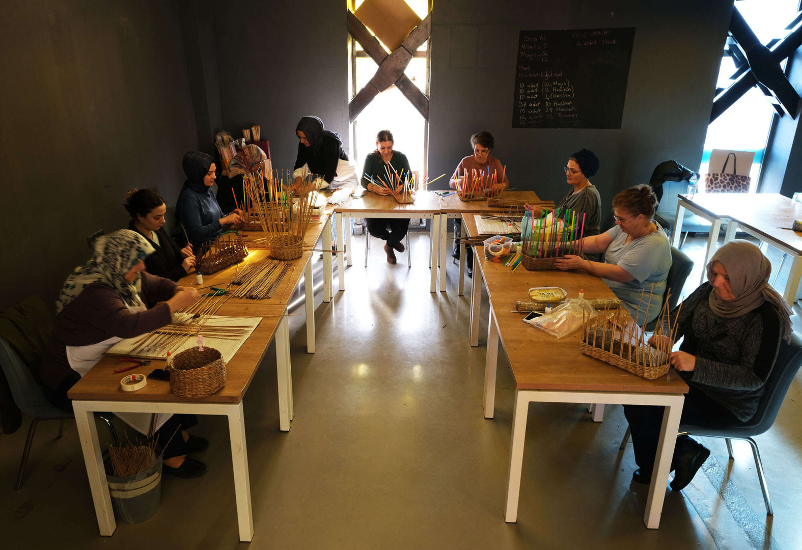Ofis Sanat Merkezi’nde (OSM) her gün yüzlerce sanat eserini, çöpten alınan malzemelerden dönüştüren kadınlar üretime önemli bir katkı sağlıyor. Alınan kâğıt ve kartonları üretime hazır hale getiren üretim ekibi, evlerde kullanılan birçok araç gereci bu atıklardan yapıyor. Kâğıtları özel bir sistemle dağılmaz, parçalanmaz şekle getiren kadınlar sepet, saksı, çamaşırlık, ekmeklik, tepsi, abajur ve akla gelebilecek birçok ev eşyasını üretiyor.