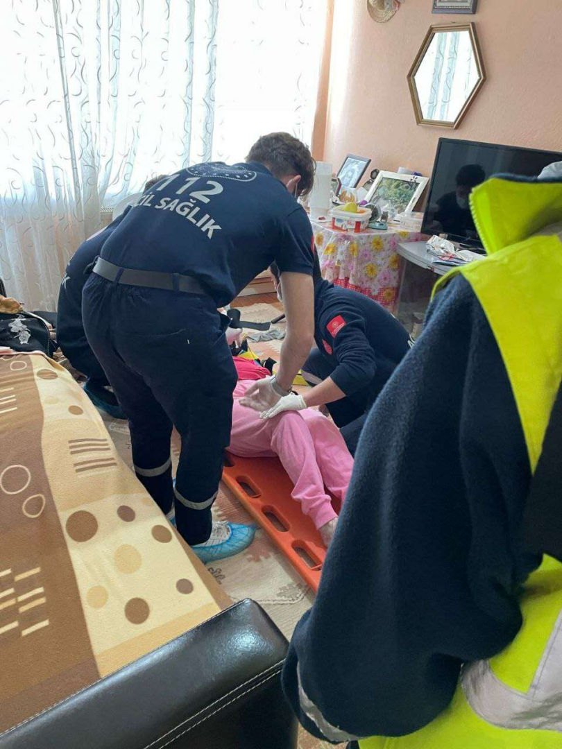 Evden sesler geldiğini fark eden YADEM personeli, yardım için kapıyı kırarak içeri girdi. Fenalaşmış halde bulunan 80 yaşındaki kadına ilk müdahale Büyükşehir ekiplerince burada yapıldı.