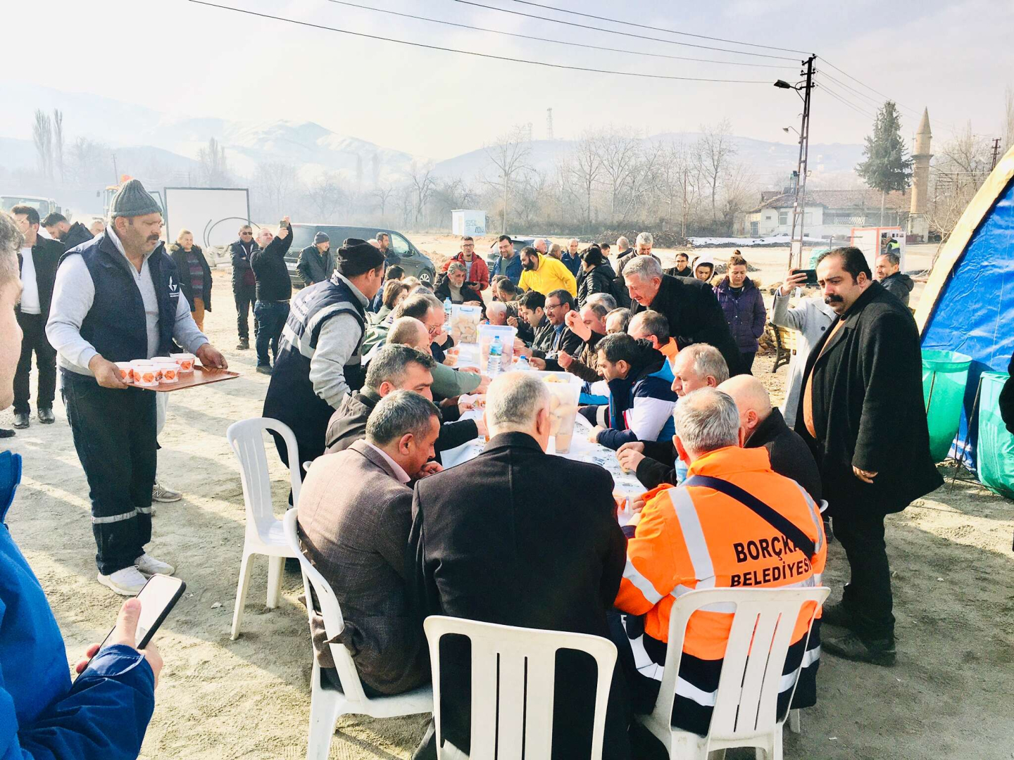 Depremin İkinci haftasından itibaren alana gelip konteyner ve çadır kurduklarını ifade eden Güzelbahçe Belediye Başkan Yardımcısı Mustafa Günay, “Depremin ilk gününde Güzelbahçe’de yardımları toplamaya başladık. Yardımların daha iyi ulaşabilmesi ve dağıtımın sağlamak adına bu merkezi kurduk. Günlük bin depremzede vatandaşımıza yemek çıkartıyoruz. 1’inci Adada 40 konteynerimizin alt ve üst yapı çalışmalarını tamamladık. Şimdi 2 ve 3’üncü adalara konteyner geldikçe yerleştiriyoruz. Hedefimiz 150 konteyner koymak. Eskişehir Büyükşehir ve Bodrum Belediyelerinden de bu konuda destek alıyoruz. Ayrıca Eskişehir ESKİ ve Muğla MUSKİ’den altyapı desteği aldık. Yaralarımızı birlikte saracağız. Başkanımız Mustafa İnce gereken ne varsa deprem bölgesinde yapacağız her defasında belirtiyor. Bugün sizleri aramızda görmek bizlere güç verdi sağ olun var olun” diye konuştu.