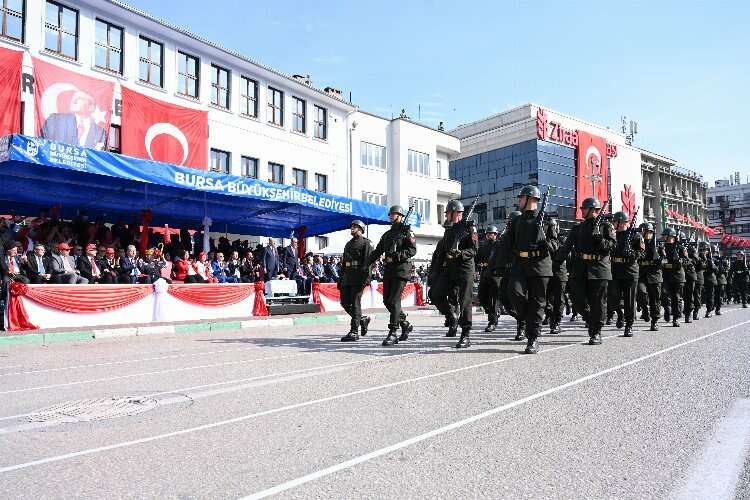 Atatürk Caddesi’ndeki törene büyük ilgi gösteren vatandaşlar, ellerindeki Türk bayraklarıyla kutlamaları izledi. Törene, Bursa Valisi Mahmut Demirtaş, Büyükşehir Belediye Başkanı Alinur Aktaş, Yıldırım Belediye Başkanı Oktay Yılmaz, Osmangazi Belediye Başkanı Mustafa Dündar, AK Parti Bursa Milletvekilleri Emel Gözükara Durmaz, Emine Yavuz Gözgeç, Refik Özen, Osman Mesten, Ahmet Kılıç, İYİ Parti Bursa Milletvekili Selçuk Türkoğlu, Bursa İl Milli Eğitim Müdürü Ahmet Alireisoğlu, Uludağ Üniversitesi Rektörü Prof. Dr. Feridun Yılmaz ve AK Parti Bursa İl Başkanı Davut Gürkan da katıldı.
