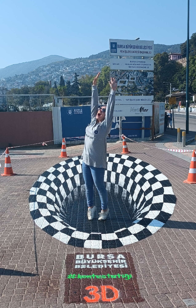 Trafo binaları, istinat duvarları ve köprülü kavşakları tuval gibi kullanıp, cadde ve sokakları sanatla buluşturan Kent Estetiği Şube Müdürlüğü’nün alanında ressamları, Bursa'yı 3 boyutlu sanatla buluşturmaya devam ediyor. Türkiye'de pek yaygın olmayan Avrupa’daki örneklerinde ise daha çok tebeşir gibi geçici boyalarla yapılan 3D uygulamalar, uzun süre etkileşimin sağlanabilmesi amacıyla Bursa'da dayanıklı özel boyalarla yapılıyor. 3D sokak boyama sanatı çalışmaları belli bir açıdan bakıldığında vatandaşlarda şaşkınlığa yol açıyor.