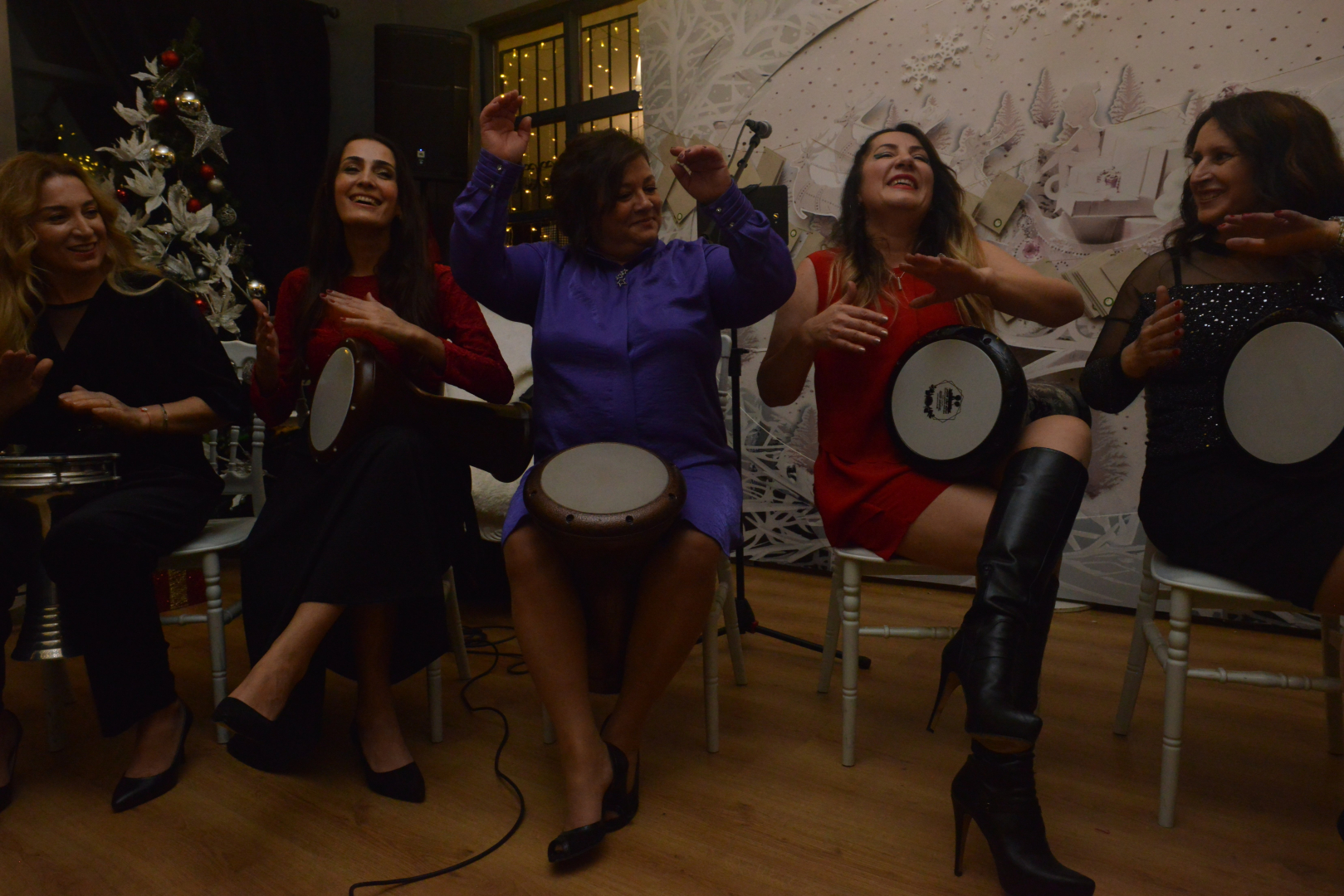 Ellerinde darbukalarıyla sahnedeki yerini alan üyeler, verdikleri mini ritim solo konseriyle dostlarını eğlendirdi. Yetenekli anneler gecenin sonunda alkışlarla ödüllendirildi.
