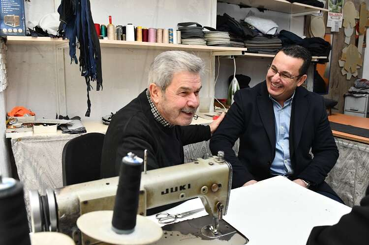 Mustafakemalpaşa Belediye Başkanı Mehmet Kanar, ilçede 53 yıldır meşhur Bursa şapkası üreten mesleğin son temsilcisi Hüseyin Doğualp'i işyerinde ziyaret etti.