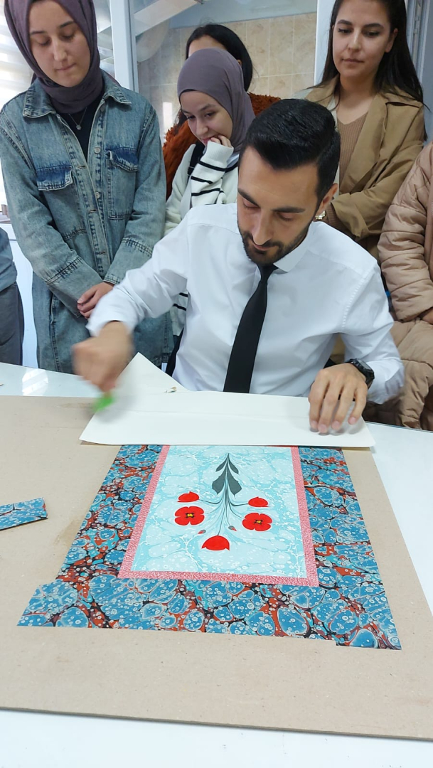 Söz konusu Geleneksel Türk Sanatları ile ilgili bilgiler veren Doç. Dr. Parlak, katılımcılarla birlikte geleneksel yöntemlerle murakka yapımı da gerçekleştirdi.