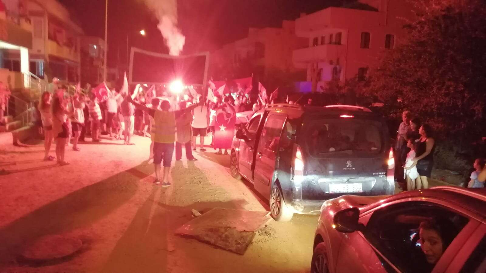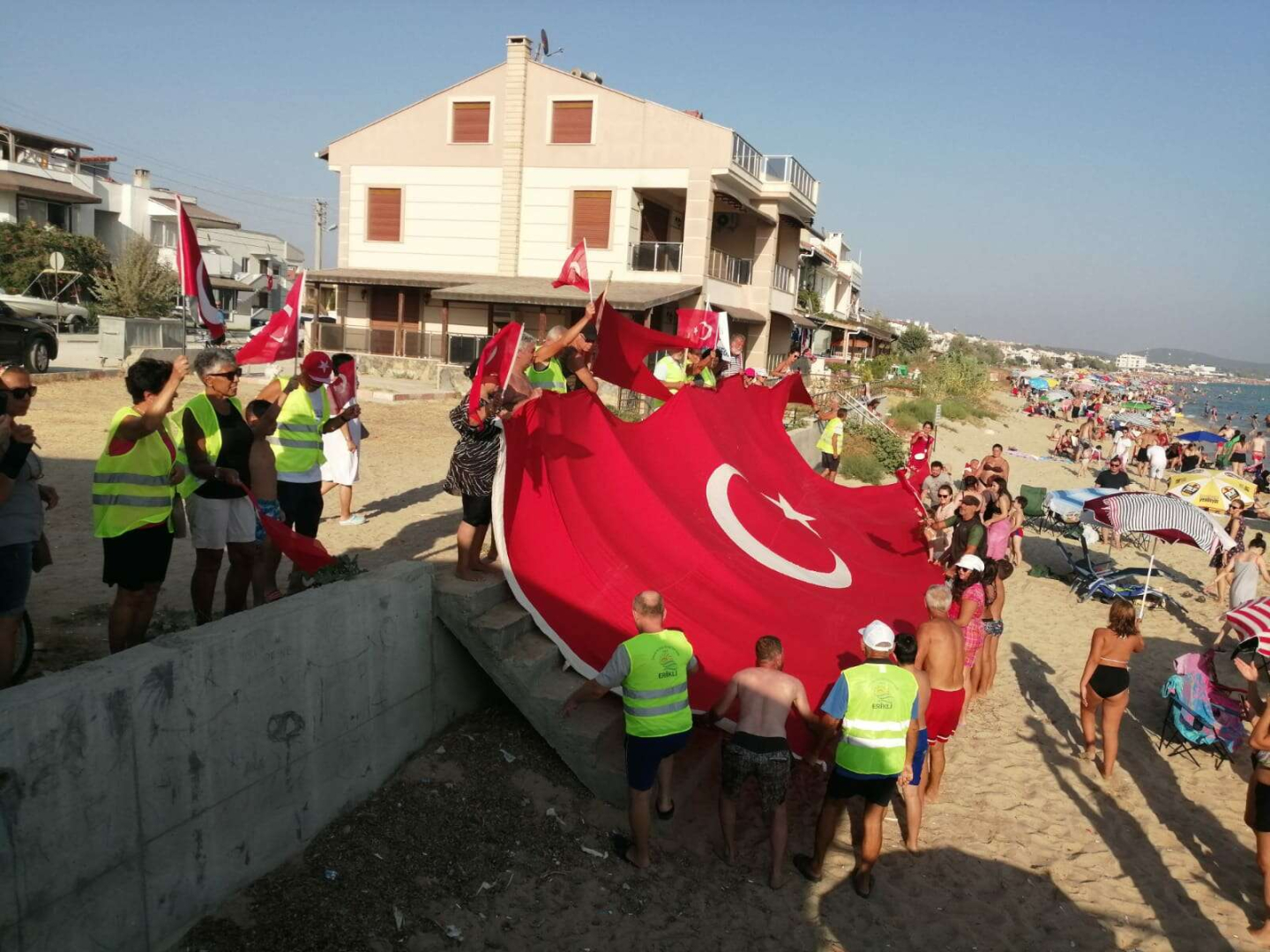 Valilik Konağı önünde toplanan yüzlerce kişi burada saygı duruşunda bulunarak İstiklal Marşı’nı okudu. Daha sonra Yalı Caddesi’nden itibaren yürüyüşünü sürdüren kortej, tek ses tek yürek olup hep bir ağızdan, müthiş coşkuyla marşlar söyleyerek, yürüyüş yaptılar ve ellerindeki Dev Türk Bayrağı ve meşaleler ile Erikli Otel’in önüne kadar yürüyüşlerini sürdürdü.