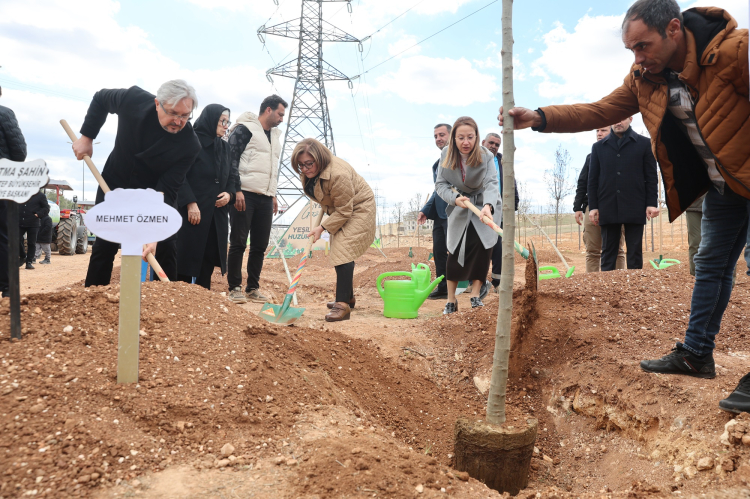 GAZİANTEP (İGFA) - Gaziantep Büyükşehir Belediyesi Kent Estetiği ve Yeşil Alanlar Daire Başkanlığı’nın Yeşil Şehirler, Huzurlu Nesiller hedefiyle 50’nci etabı Özmen ailesinin 2023 yılında trafik kazasında hayatını kaybeden oğulları Emre Özmen anısına Çamtepe mahallesinde 9 bin metrekare alan üzerinde 500 fidan toprakla buluştu.