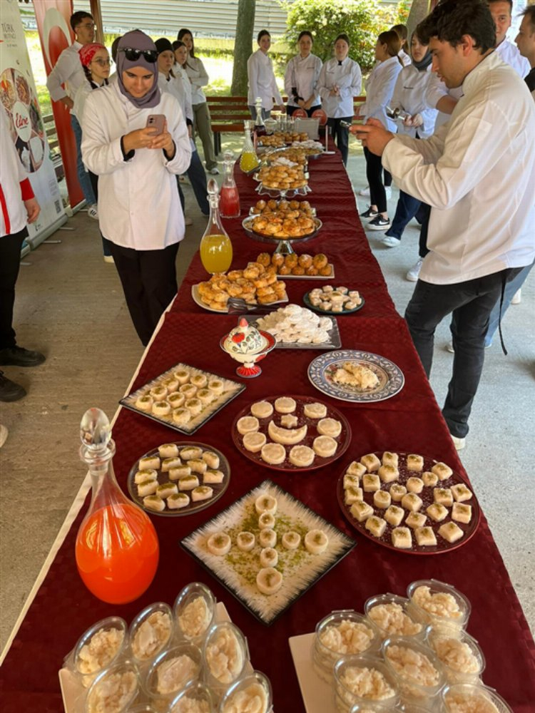 Düzenlenen etkinlikler kapsamında Aşçılık Programı Öğrencilerimiz Arda Meslek Yüksekokulu Bahçesinde Öğr. Gör. Sedat Kocadoğan, Öğr. Gör. Çağla Yumuk Mercan organizasyonu ile Neslişah Sultan Şerbeti, Çilekli Limonata, Hibiskus Şerbeti, Nane Şerbeti ile saray şerbetlerini sergilediler.