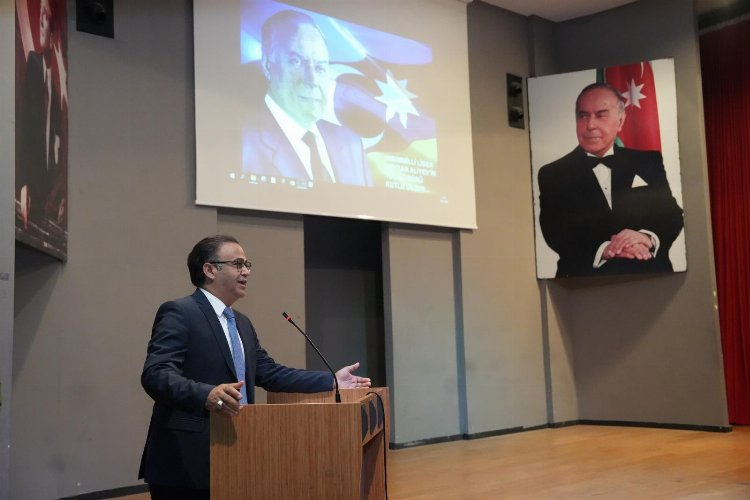 Anma töreninde konuşan İzmir İl Milli Eğitim Müdürü Dr. Ömer Yahşi, şu ifadeleri kullandı: “Bugün burada tarihi hafızamız, dilimiz ve medeniyet tasavvurumuz ile bir kalbin iki yarısını paylaştığımız, kardeş ülke Azerbaycan’ın büyük lideri, merhum Heydar Aliyev'in aziz hatırasına binaen bir araya geldik. Zamanın eskitemediği fikirleri ile bu coğrafyada kalıcı ve derin izler bırakan Aliyev’in bize ilham veren manevi mirasını yeni nesillere aktarmak istiyoruz. Türkiye ve Azerbaycan olarak aynı kökle bu topraklara bağlı büyük bir çınarın dallarıyız. İki devlet, bir millet… Derdi derdimiz, sevinci bahtiyarlığımız, bize kardeşten öte can Azerbaycan’ın büyük lideri Haydar Aliyev’in vizyoner bakış açısı, cesareti ve kararlılığı, yalnızca Azerbaycan ile sınırlı değildi. Aliyev'in hayatı Azerbaycan halkıyla birlikte tüm bölgenin kaderini etkileyen büyük bir hikâyenin parçasıdır. En büyük hayali büyük ve güçlü Türk Milleti olan merhum Heydar Aliyev, ömrünü bu hayali gerçekleştirmeye adadı. Eğer bugün hala aynı rüyayı, aynı duayı paylaşıyorsak hiç kuşkusuz bunda Aliyev’in çok önemli rolü vardır. Ülkelerimiz arasında kurulan dil, tarih ve inanç köprüsünden kardeşliği, birliği ve beraberliği taşıyacağız. Bu yolda birlikte yürürken mazlum uluslara bir umut olacağız. İki ülke arasında kurulan kadim köprülerin, yeni nesiller ile günden güne güçleneceğinden hiç kuşkumuz yok. Bu duygularla Türkiye ile Azerbaycan arasında ilişkilerin güçlendirilmesi yolunda hizmetleri hafızalardan silinmeyecek olan merhum lider Heydar Aliyev’i rahmetle yâd ediyor, aziz hatırasına saygılarımı sunuyorum.”
