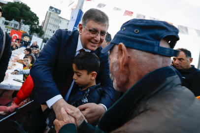 İZMİR (İGFA) - İzmir Büyükşehir Belediyesi tarafından kentin bir çok noktasında kurulan iftar sofraları, İzmir'deki dayanışmayı büyütüyor. Aliağa'da Belediye ve Demokrasi Meydanı'nda kurulan iftar sofrasına konuk olan İzmir Büyükşehir Belediye Başkanı Dr. Cemil Tugay, yurttaşlarla birlikte iftar yaptı. Başkan Cemil Tugay'a CHP Parti Meclisi (PM) Üyesi Yalçın Görgöz, İzmir Büyükşehir Belediyesi Genel Sekreter Yardımcıları Prof. Dr. Pınar Okyay ve Çağatay Güç de eşlik etti. Birlik ve beraberlik mesajlarının verildiği programda, çocuklara pamuk şeker dağıtıldı.