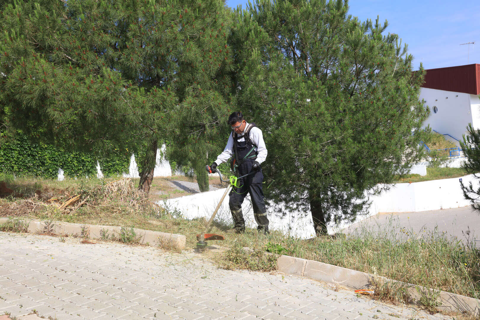 İZMİR (İGFA) - Güzelbahçe Belediyesi Park Bahçeler Müdürlüğü ekipleri havaların ısınmasıyla ilçe genelinde park, refüj, yol, cadde, kaldırım ve boş alanlarda uzayan yabani otları biçerek oluşabilecek yangın ve görüntü kirliliğini ortadan kaldırıyor.