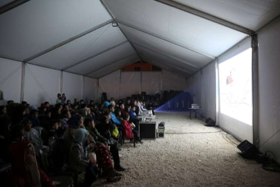 KOCAELİ (İGFA) - Asrın felaketi olarak nitelenen merkez üssü Kahramanmaraş olan depremlerin ilk anından itibaren bölgeye yardım elini uzatan Kocaeli Büyükşehir Belediyesi, gerçekleştirdiği çalışmalarla yaraları sarmaya devam ediyor. Bölge halkına yönelik her türlü yardımlarıyla dikkat çeken Büyükşehir, depremden etkilenen çocukların hayata tekrar adapte olması için de etkinlikler düzenliyor. Bu kapsamda Hatay’ın Defne ilçesine giden Kocaeli Şehir Tiyatroları, çadır kentte kalan çocukların yüzlerini güldürebilmek için gündüzleri tiyatro sahneliyor akşamları ise çizgi film gösterimi yapıyor. Bir sinema salonuna çevrilen çadırda çocuklar için her şey düşünülüyor.