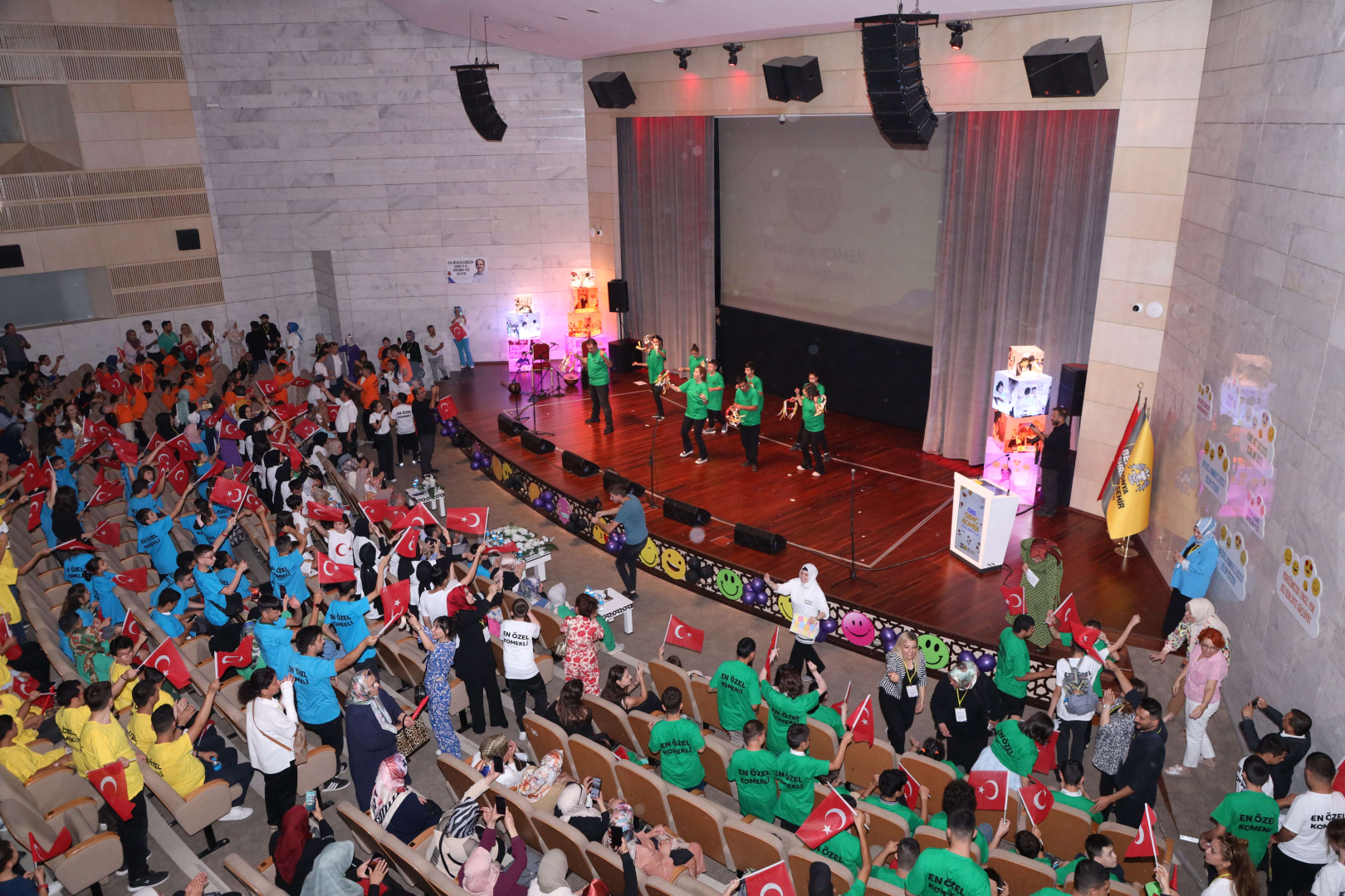 Özel Genç KOMEK Yaz Okulu Dönem Sonu Programı'na, Kur'an-ı Kerim tilavetiyle başlayan özel öğrenciler, orff eğitimi bayrak gösterisi, kaşık gösterisi, koro, dans gösterisi, hacivat ve karagöz gösterileriyle de doyasıya eğlendi.
