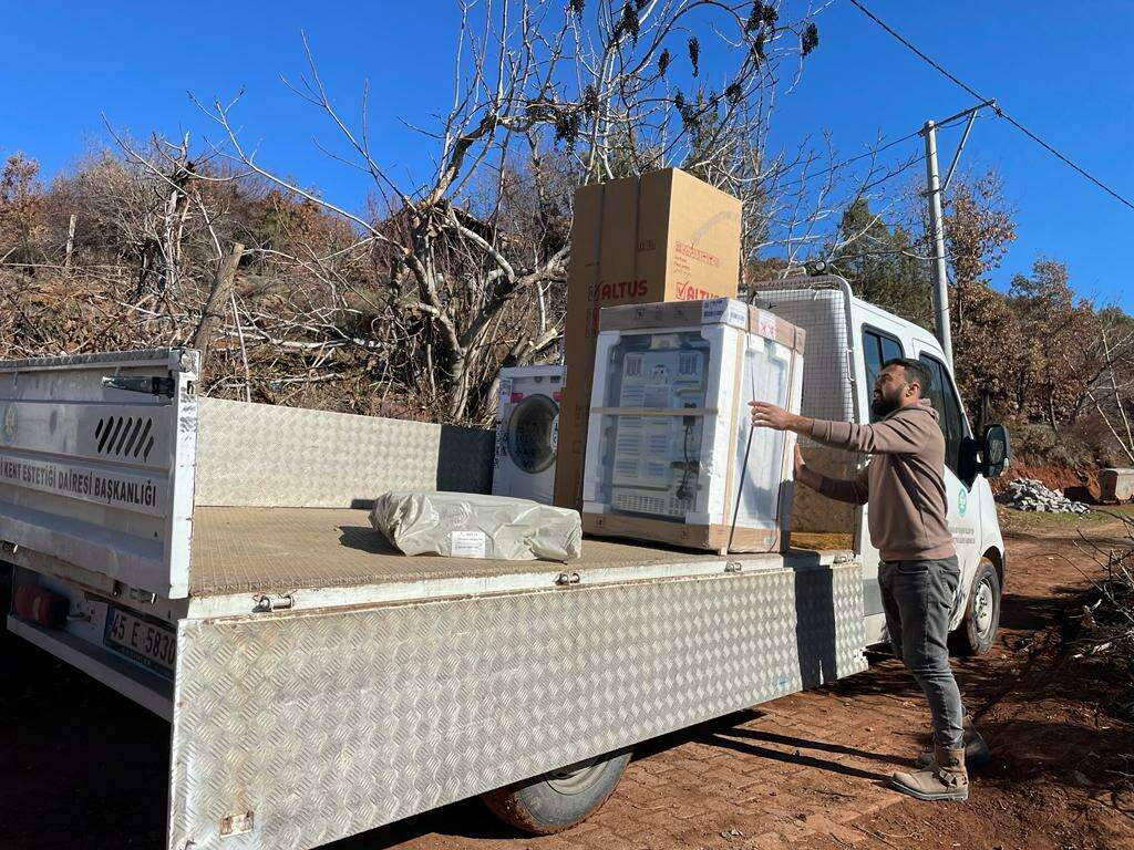 Manisa Büyükşehir Belediyesi, Gördes ilçesine bağlı Fundacık Mahallesi’nde evlerinde çıkan yangın sonucu eşyaları kullanılamaz hale gelen Çakmak ailesine eşya desteği sağladı.