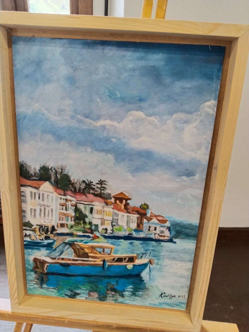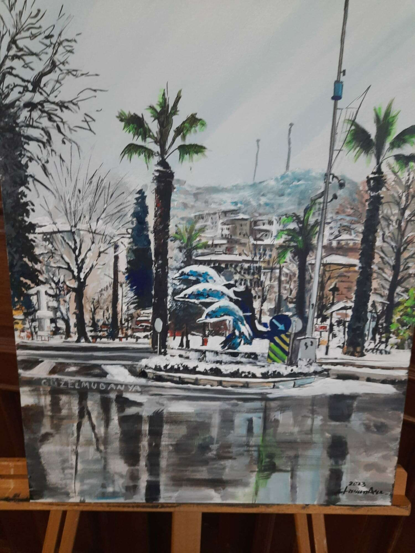 Mudanya Belediyesi'nin desteklediği ve geliri Türkiye Yardım Sevenler Derneği (TYSD) Mudanya Şubesi'ne bağışlanarak depremzedelere gidecek olan Mudanya-Tirilye temalı sergide 40 yağlı boya tablo görücüye çıktı.