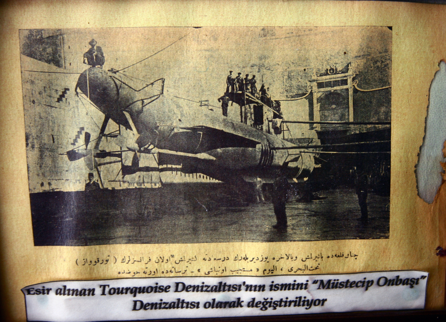 Savaşın en şiddetli zamanında Kilitbahir’de boğazı geçmek isteyen Fransız denizaltısını fark eden Müstecip Onbaşı, topunu ateşler, birkaç atıştan sonra Fransızların gurur kaynağı Turguoise yara alır. Denizaltı su almaya başlayınca geminin komutanı Binbaşı Ravanel, su yüzüne çıkma emrini verir. Su yüzeyinde köpükler çıkararak yüzeye çıkan deniz altıyı Müstecip Onbaşı ve silah arkadaşları esir alırlar. Müstecip Onbaşı, Enver Paşa’nın da bulunduğu bir törenle bir altın saat ve bir madalyayla ödüllendirilir. Savaş zaferle kazanıldıktan sonra köyüne dönen Müstecip Onbaşı çiftçilik ile uğraştı ve 1956 yılında hayata gözlerini yumdu. Müstecip Onbaşı, her yıl 19 Eylül günü, düzenlenen törenlerle anılıyor.